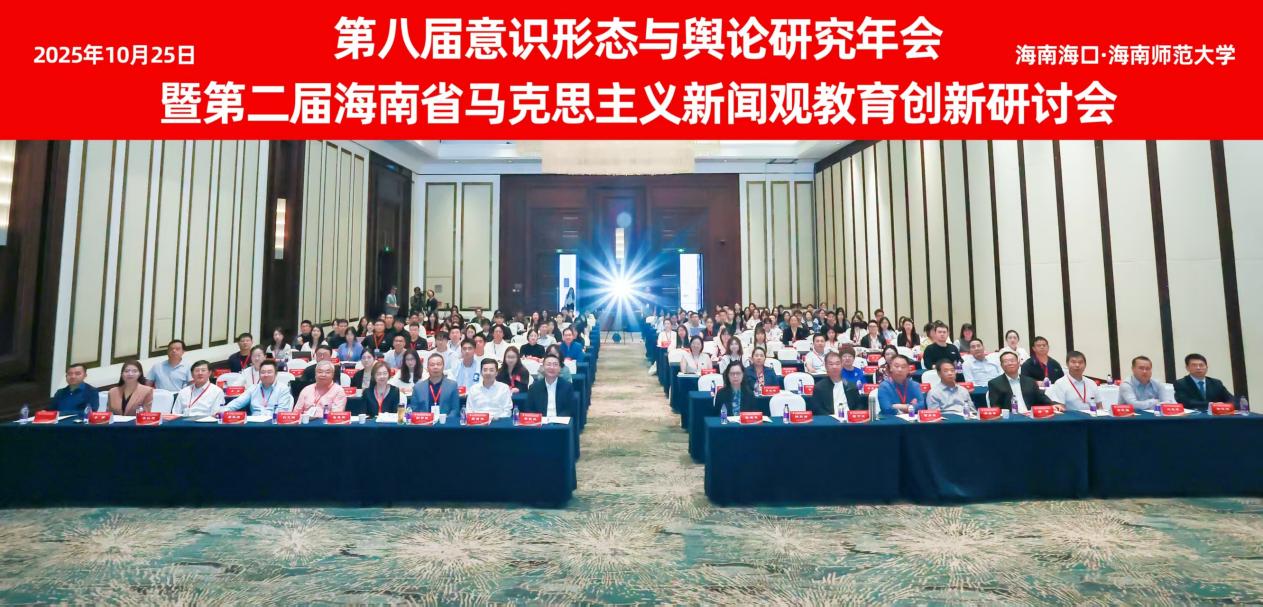 10月25日,第八届意识形态与舆论研究年会暨第二届海南省马克思主义新闻观教育创新研讨会在海南海口成功举办。来自全国近40余所院校及科研智库机构的200多位专家学者齐聚一堂,围绕主流意识形态建设与中国特色政治传播发展展开深入交流研讨,为新时代意识形态安全建设、主流舆论引导及海南自贸港风险防控提供学术支撑。