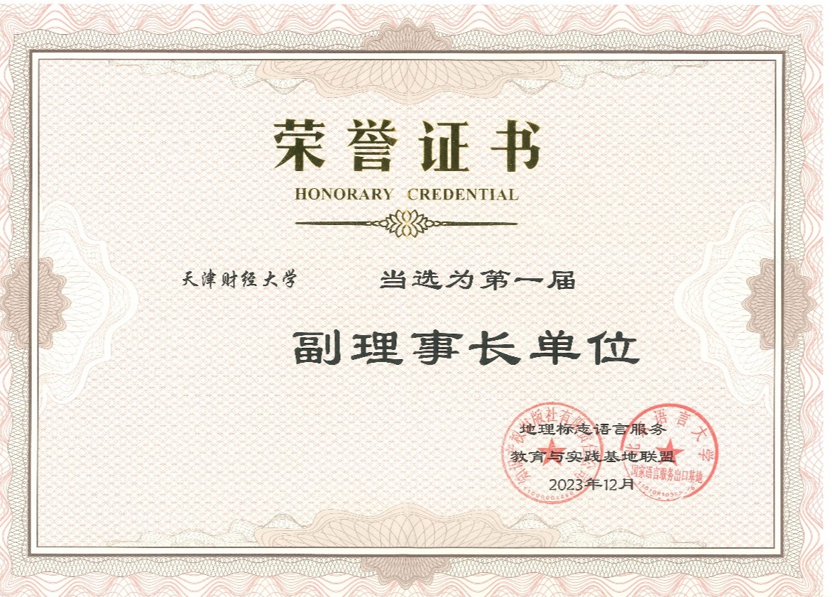 接受“副理事长单位”和“地理标志语言服务教育与实践基地(培育)”的授牌。