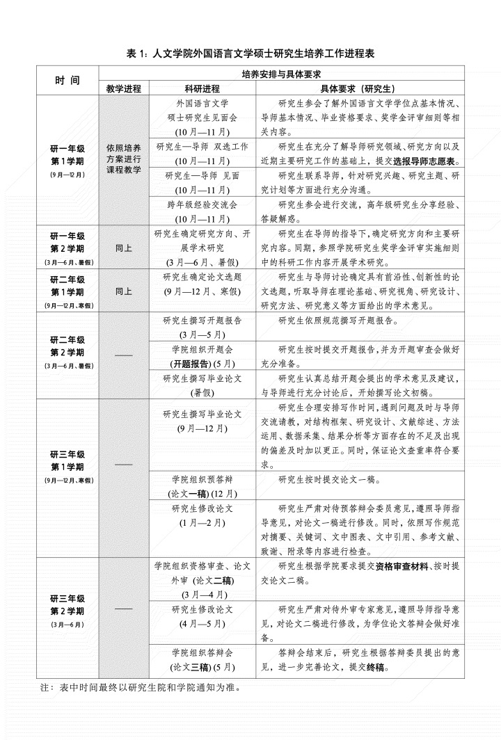 age动漫 外国语言文学硕士研究生培养工作进程表